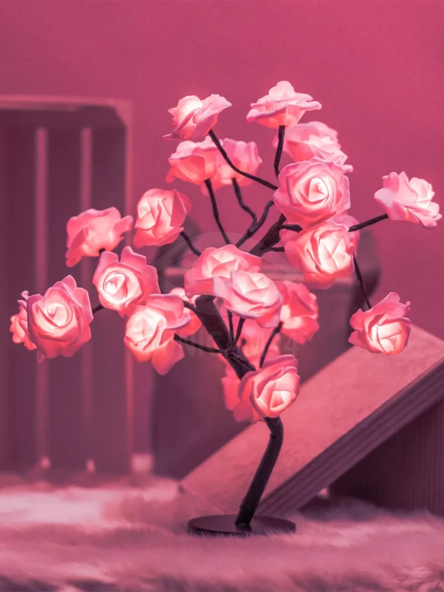 Светильник светодиодная роза LED, розовые цветы